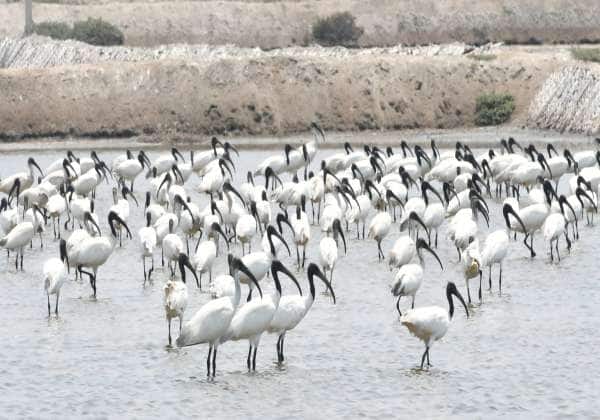 தூத்துக்குடி உப்பளங்களில் இரை தேடி குவிந்துள்ள வெள்ளை அரிவாள் மூக்கன் பறவைகள்.