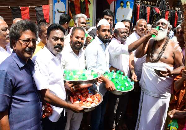 கோவை கோட்டை ஈஸ்வரன் கோவில் சித்திரை திருவிழாவை ஒட்டி தேரோட்டம் நடந்தது. இதில் பக்தர்களுக்கு முஸ்லிம்கள் கூல்டிரிங்ஸ் மற்றும் பிஸ்கட் ஆகியவை வழங்கினர்.