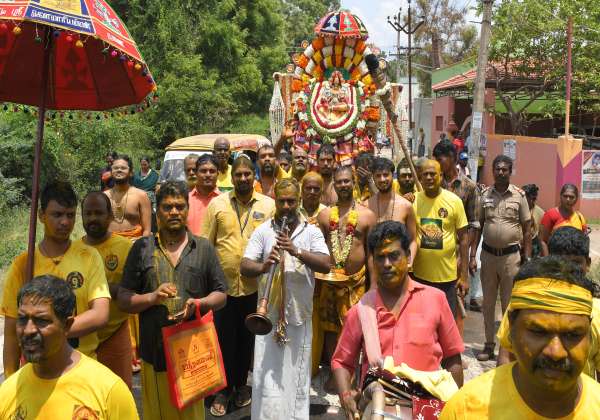வீரபாண்டி கவுமாரியம்மன் கோயில் சித்திரை திருவிழா நிறைவுற்று மஞ்சள் நீராட்டத்துடன் அம்மன் ஊர் கோயில் செல்லும் நிகழ்ச்சி நடந்தது.