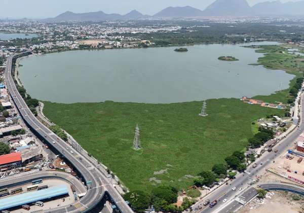 குளத்தின் பாதியோ ஆக்கிரமித்தது ஆகாயத்தாமரையால். இடம்: கோவை பெரியகுளம்.
