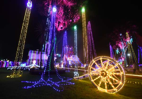 ஊட்டி தாவரவியல் பூங்காவில், மலர் கண்காட்சியை முன்னிட்டு வண்ண விளக்குகளால் ஜொலிக்கிறது.
