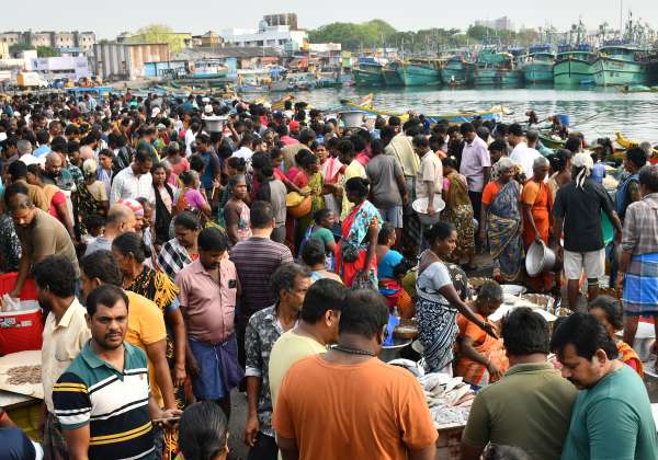 விடுமுறை தினத்தையொட்டி சென்னை காசிமேடு மீன்பிடி துறைமுகத்தில் மீன்கள் வாங்க குவிந்த மக்கள் கூட்டம்.