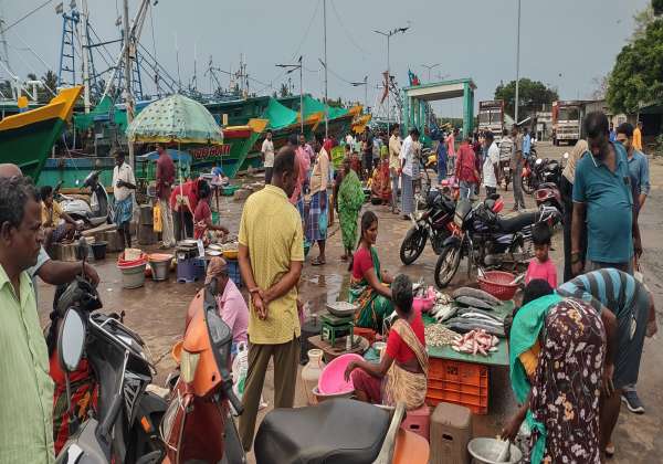 எப்பொழுதும் பிசியாக காணப்படும் மீன்பிடித் துறைமுகம் மீன்கள் வரத்து குறைவால் குறைந்த அளவை வியாபாரம் நடைபெற்றது. இடம்: முதுநகர், கடலூர்.