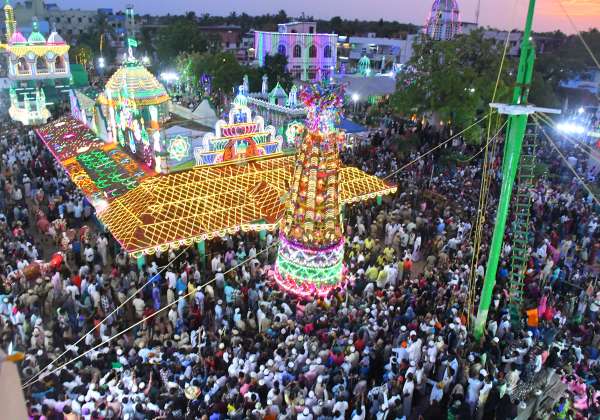 ராமநாதபுரம் மாவட்டம் ஏர்வாடி அல் குத்புல் சுல்தான் செய்யது இப்ராஹிம் பாதுஷா நாயகம் தர்காவில் மத நல்லிணக்க சந்தனக்கூடு விழா நடந்தது.