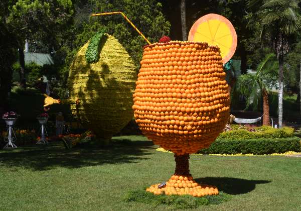 குன்னூர் சிம்ஸ் பார்க்கில், 65 வது மலர் கண்காட்சியை முன்னிட்டு , பழங்களால் ஜூஸ் கிளாஸ் அமைக்கப்பட்டது.