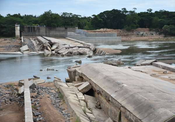 கடலூர் அடுத்த சொர்ணாவூர் தென்பெண்ணையாற்றில் தடுப்பணை உடைந்ததை சரி செய்யாததால் ஆற்றில் வரும் தண்ணீர் வீணாக வெளியேறுகிறது.