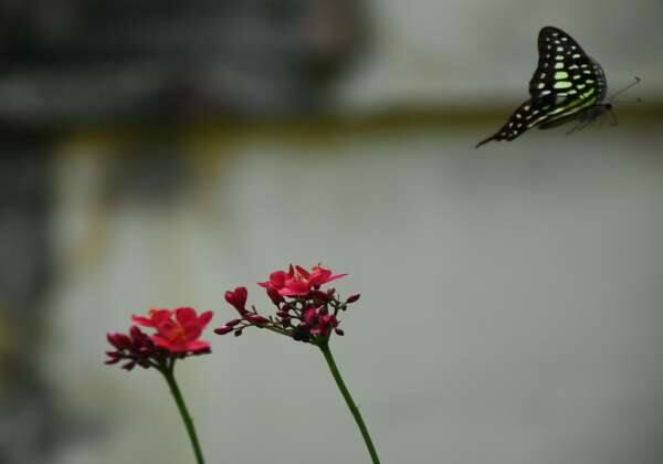 மழையால் பூத்து குலுங்கிய பூக்களில் தேன் எடுத்து செல்லும் பட்டாம் பூச்சி. இடம் கோவை, கலெக்டர் அலுவலகம்.