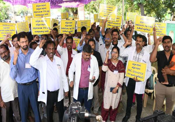 அரசு மருத்துவர்கள் நீண்ட நாள் கோரிக்கைகளை வலியுறுத்தி சென்னை எழும்பூர் ராஜரத்தினம் மைதானம் அருகே அரசு மருத்துவர்கள் சட்ட அமைப்பு சார்பில் கவன ஈர்ப்பு ஆர்ப்பாட்டம் நடந்தது.