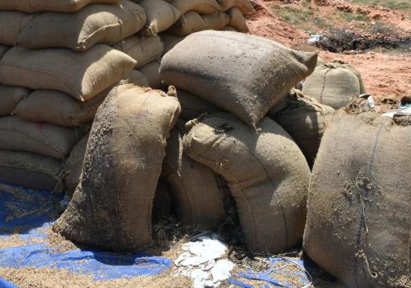 தூத்துக்குடி, ஸ்ரீவைகுண்டம் தாலுகா தோழப்பண்பண்ணை கிராமத்தில் உள்ள நெல் கொள்முதல் நிலையத்தில் பாதுகாக்கப்பட்ட நெல் மூட்டைகள் மழையில் நனைந்து சேதமடைந்தன.