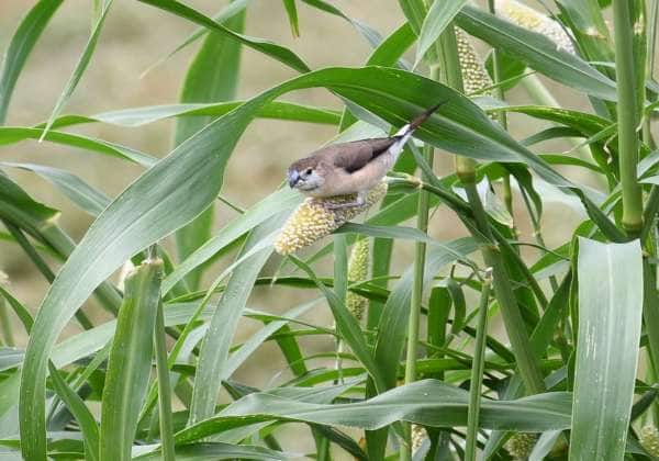 விவசாயிகள் பயிரிட்டுள்ள கம்பு பயிர்கள் மீது அமர்ந்து சாப்பிடும் குருவி.இடம்.உடுமலை.