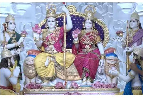 அயோத்தி ராமர் கோயிலில் முதல் தளத்தில் உள்ள ராம் தர்பார் மண்டபத்தில் இன்று (மே.5) பிராண் பிரதிஷ்டை சிறப்பாக நடந்தது. அங்குள்ள ராமர் சிலையின் அழகிய தோற்றம்.