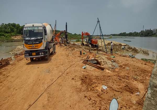 பாகூர் அடுத்துள்ள கொம்மந்தான்மேடு தென்பெண்ணை ஆற்றில் வெள்ளப்பெருக்கின் போது உடைப்பு ஏற்பட்ட கரைப்பகுதியை சீரமைக்கும் பணி நடைபெற்று வருகிறது.