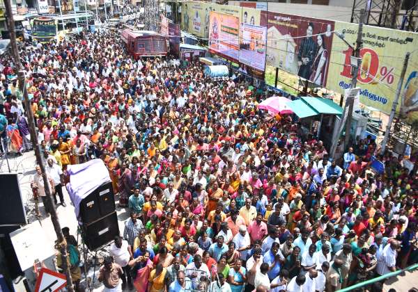 கடலூர் புதுப்பாளையம் ஆற்றங்கரையில் உள்ள தரைக் காத்த காளியம்மன் கோயில் கும்பாபிஷேகத்தில் கலந்துக்கொண்ட பக்தர்கள் கூட்டம்.
