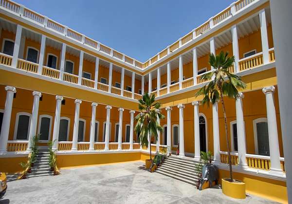 புதுச்சேரி மிஷன் வீதியில் உள்ள அரசு கலவை கல்லூரி மேல்நிலைப் பள்ளியின் அழகிய உட்புற தோற்றம்.