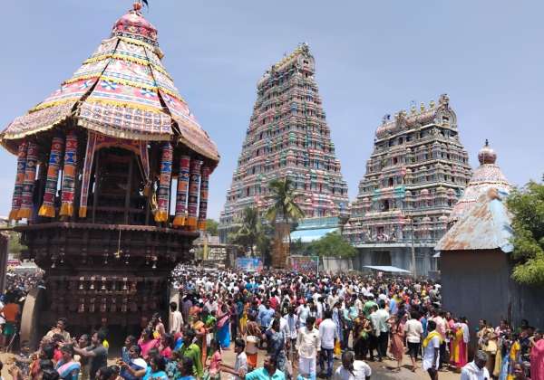 காளையார் கோவில் சோமேஸ்வரர் சவுந்தரநாயகி அம்மன் கோயில் வைகாசி விசாக தேரோட்டம் நடைபெற்றது.