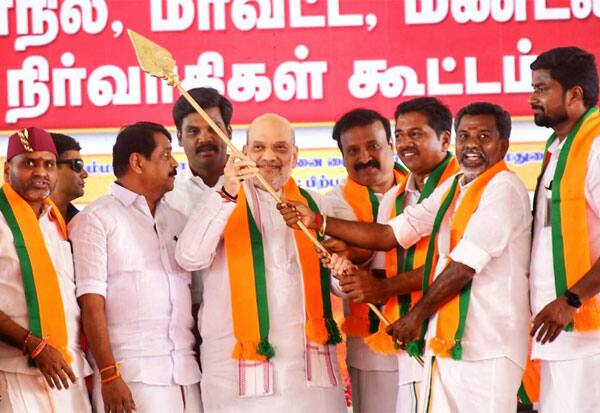 மதுரையில் நடந்த பா.ஜ., மாநில நிர்வாகிகள் கூட்டத்தில் பங்கேற்ற உள்துறை அமைச்சர் அமித் ஷாவிற்கு கட்சி நிர்வாகிகள் வேல் வழங்கினர்.