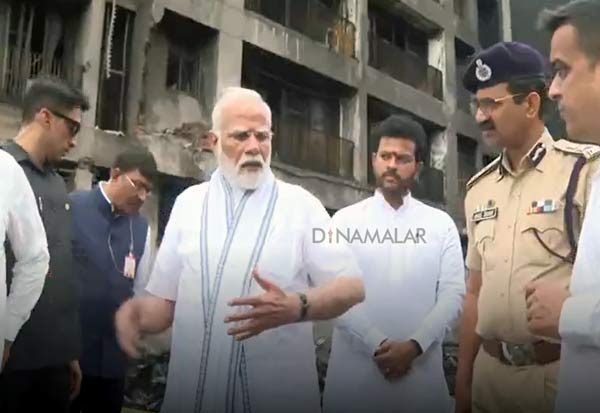 குஜராத்தில் விமான விபத்து நடந்த இடத்தில் பிரதமர் மோடி நேரில் சென்று விசாரித்தார்.