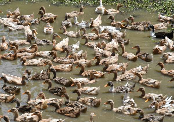திருநெல்வேலி மாவட்டம் திருவேங்கடநாதபுரம் பகுதியில் உள்ள நீர் ஓடையில் உற்சாகமாக நீந்தி செல்லும் வாத்து கூட்டங்கள்.
