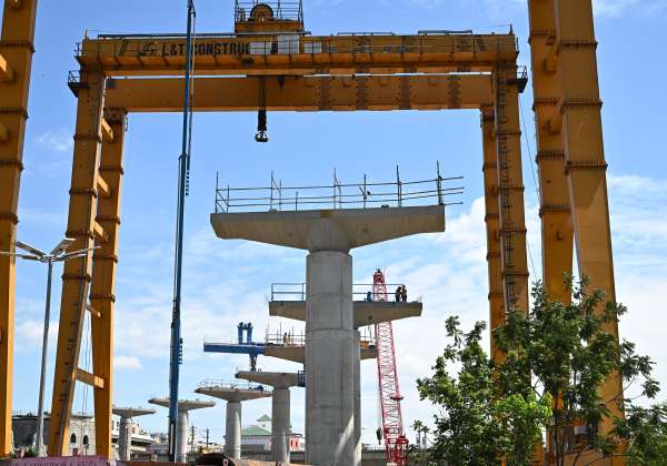 மாதவரம் - சோழிங்கநல்லூர் மெட்ரோ தடத்தில் கோயம்பேடு மார்க்கெட் அருகில் மெட்ரோ ரயில் பணிகள் தீவிரமாக நடந்து வருகிறது.