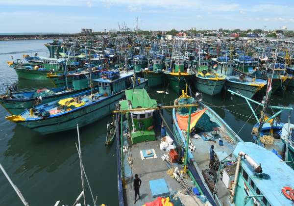 தமிழகத்தில் மீன்பிடி தடைக்காலம் முடிந்த நிலையில் கடலுக்கு செல்வதற்கு தயார் நிலையில் உள்ள படகுகள். இடம்.காசிமேடு மீன்பிடித் துறைமுகம்.