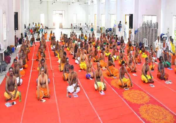 ராமேஸ்வரம் கோசுவாமி மடத்தில் நடக்கும் கிராம கோயில் வழிபாட்டு பயிற்சி முகாமில் ஏராளமான கிராம கோயில் பூசாரிகள் பங்கேற்றனர்.