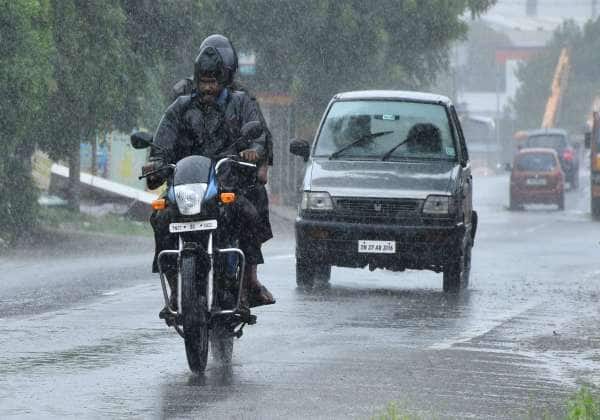 கொட்டித் தீர்த்த சாரல் மலையில் ஊர்ந்து சென்ற வாகனங்கள். இடம்: கோவை, மதுக்கரை மார்க்கெட் மெயின் ரோடு.