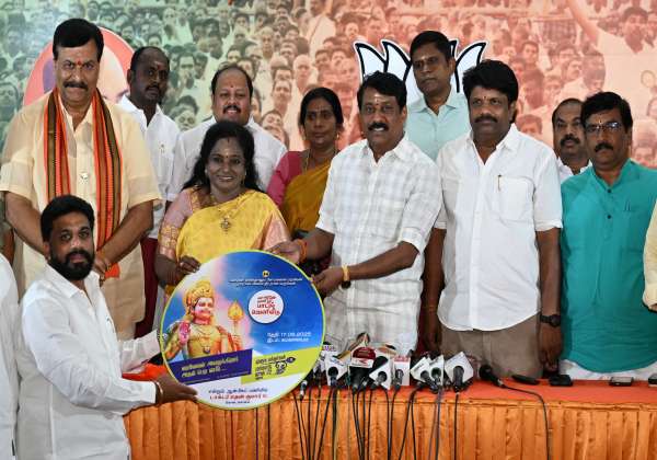 மதுரையில் நடக்கவுள்ள முருக பக்தர்கள் மாநாடு தொடர்பான பத்திரிகையாளர் சந்திப்பில் முருக பக்தர்கள் மாநாடு குறித்த பாடலை தமிழக பா.ஜ மாநில தலைவர் நயினார் நாகேந்திரன் வெளியிட்டார்.