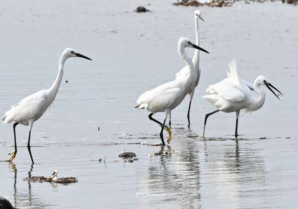 முகத்துவாரம் பகுதியில் தேங்கி நிற்கும் குப்பைகளின் இடையே தனது இரையை தேடிப் பிடித்து உண்ணும் கொக்குகள்.இடம் : சீனிவாசபுரம்.