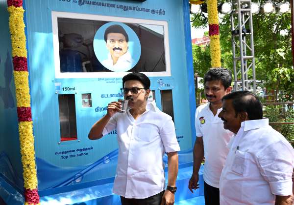 குடிநீர் வாரியத்தின் சார்பில், சென்னை மெரினா கடற்கரையில் புதிதாக அமைக்கப்பட்டுள்ள கட்டணமில்லா குடிநீர் வழங்கும் தானியங்கி இயந்திரங்களை முதல்வர் ஸ்டாலின் துவக்கி வைத்து தண்ணீரை பருகினார்.
