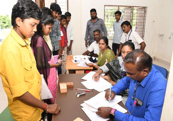 உடுமலை அரசினர் தொழிற்பயிற்சி நிலையத்தில் புதிதாக சேர்வதற்காக நடக்கும் கலந்தாய்வில் பங்கேற்றுள்ள மாணவர்கள் .