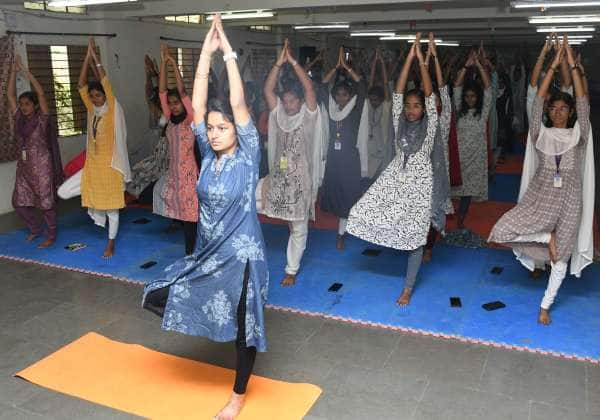 சர்வதேச யோகா தினத்தை முன்னிட்டு கோவை அரசு கலைக்கல்லூரி மாணவர்கள் யோகா சிறப்பு முகாமில் கலந்து கொண்டு யோகா கற்றனர்.