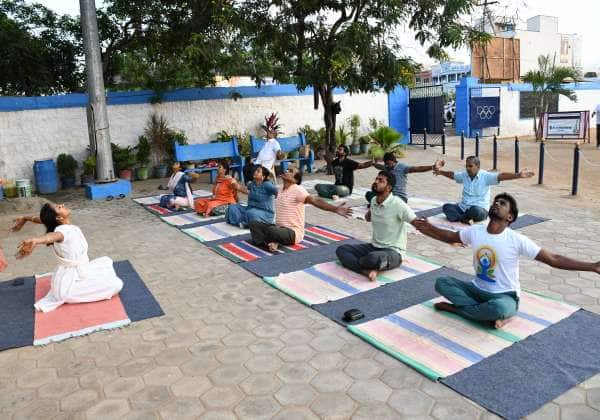 சர்வதேச யோகா தினத்தை முன்னிட்டு உடுமலை பத்ம சூர்யா இயற்கை மற்றும் யோகா மருத்துவமனை சார்பில் நேதாஜி மைதானத்தில் இலவச யோகா பயிற்சி நடந்தது,