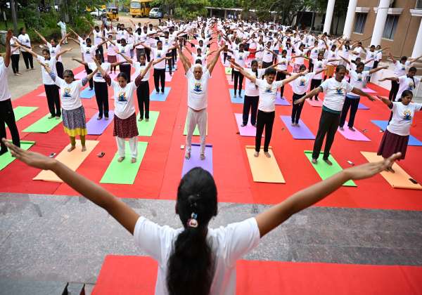 11வது சர்வதேச யோகா தினத்தை முன்னிட்டு டாக்டர் எம்.ஜி.ஆர் மருத்துவப் பல்கலை சார்பில் யோகாசன நிகழ்ச்சி நடந்தது. இடம் : கிண்டி.