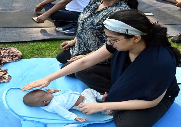 11 வது உலக யோகா தினத்தை ஒட்டி டெல்லி லோதி கார்டனில் பொதுமக்கள் கலந்து கொண்ட யோகாசன நிகழ்ச்சியில் தனது கைக்குழந்தையும் தன்னுடன் சுமந்து வந்து யோகாசன போட்டிகளை பயிற்று வித்து. மகிழ்ந்த தாய்