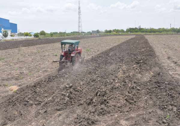 விருதுநகரில் ஆடி மாத சோள பயிர்கள் சாகுபடிக்காக நிலத்தை உழும் பணியில் ஈடுபட்ட விவசாயி.