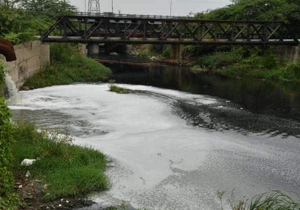 சென்னை திருவொற்றியூர் மாட்டு மந்தை மேம்பாலத்தின் கீழ் பக்கிங்ஹாம் கால்வாயில் ரசாயன கழிவு நுரைகள் காணப்படுகின்றன.