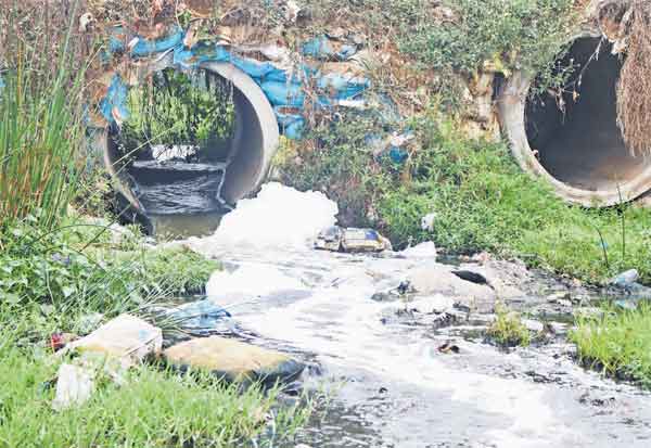 காஞ்சிபுரம் வேகவதி ஆற்றில் நுரையுடன் கலக்கும் சாய ஆலை கழிவு நீர். இடம் : தாட்டித்தோப்பு