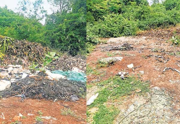 வண்டலூர் -வாலாஜாபாத் சாலையோரம் காப்புக்காட்டில் கொட்டப்பட்டுள்ள கழிவு. இது குறித்த செய்தி நம் நாளிதழில் வெளியானதை அடுத்து வனத்துறையினர், குப்பையை அகற்றினர். இடம்: பனப்பாக்கம்.