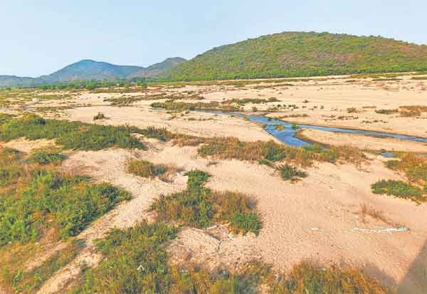 தண்ணீரின்றி வறண்டு கிடக்கும் பாலாறு. இடம் : செங்கல்பட்டு