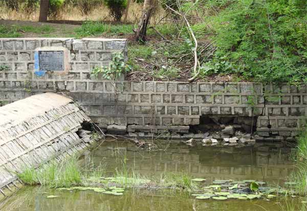 நந்தியாற்றின் குறுக்கே கட்டப்பட்டுள்ள தடுப்பணை சேதம் அடைந்துள்ளது.இடம்: விநாயகபுரம்.