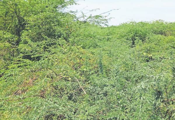 சாயல்குடி ஆற்றில் ஆக்கிரமித்துள்ள கருவேல மரங்கள்