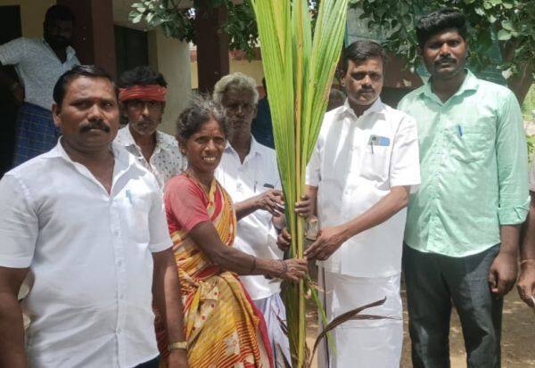 திண்டிவனம் அடுத்த மாம்பாக்கம் கிராமத்தில் பொது மக்களுக்கு அரசு சார்பில் தென்னங்கன்று வழங்கும் நிகழ்ச்சி நடந்தது