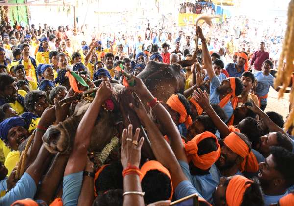 கோவை கவுண்டம்பாளையம் அருள்மிகு மாரியம்மன், அருள்மிகு மாகாளியம்மன் கோவிலில் ஆனிப் பெரும் பூச்சாட்டு திருவிழாவில் மாரியம்மன் கோவில் முன் எருத்துக்கட்டு நடைபெற்றது.