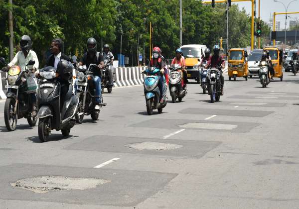 கார் ரேஸ் நடத்துவதற்கு பயன்படுத்தப்பட்ட அண்ணா சாலை முறையாக சீரமைக்கப்படாததால் வாகன ஓட்டிகள் மேடு பள்ளங்களில் சிக்கி அவதிக்கு உள்ளாகி வருகின்றனர்.இடம்: பல்லவன் சந்திப்பு அருகே.