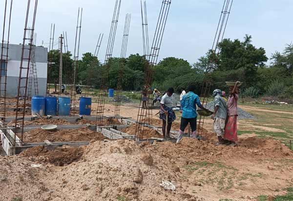 பழங்குடியினர் குடும்பத்தினருக்கு இலவச வீட்டுமனைபட்டா வழங்கப்பட்டு கான்கிரீட் வீடுகள் கட்டுமானப்பணி நடந்து வருகிறது. இடம்: பழவேரி