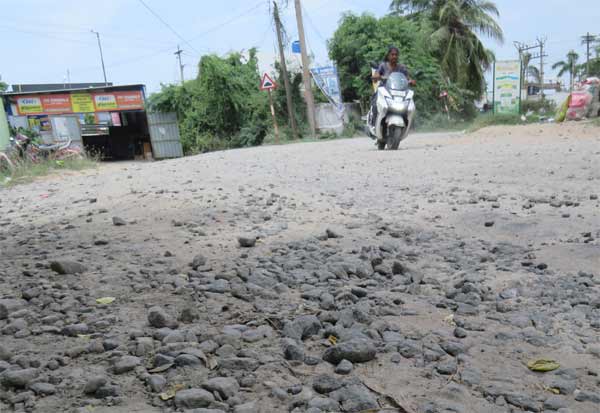 ஓரிக்கை வசந்தம் நகரில் ஜல்லி கற்கள் பெயர்ந்து சேதமடைந்த சாலையை சீரமைக்க வாகன ஓட்டிகள் எதிர்பார்க்கின்றனர்.