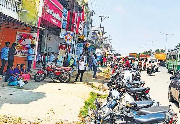சிங்கப்பெருமாள் கோவிலில் ஜி.எஸ்.டி., சாலையை ஆக்கிரமித்து நிறுத்தப்பட்டுள்ள வாகனங்கள்.