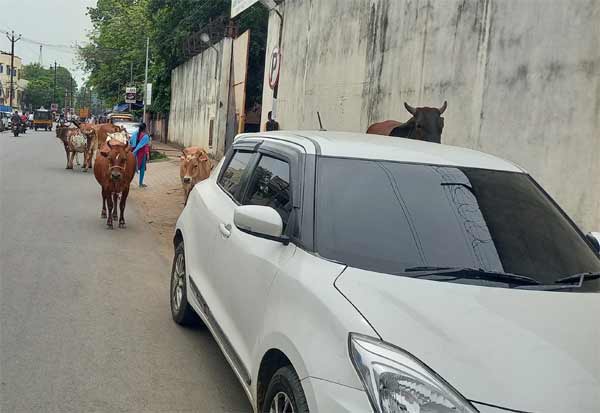 செங்கல்பட்டு காஞ்சிபுரம் சாலையில் சுற்றித்திரியும் மாடுகள்.