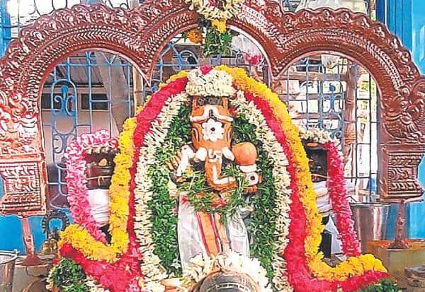 விருதுநகர் வன்னியப்பெருமாள் பெண்கள் கல்லூரி வளாகத்தில் அமைந்துள்ள வெற்றி விநாயகர் கோவிலில் கும்பாபிஷே கத்தை முன்னிட்டு அலங்காரத்தில் சுவாமி
