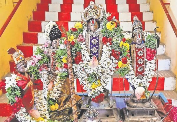 ராமநாதபுரம் கோதண்ட ராமர் கோவிலில் அலங்காரத்தில் ராமர் சீதா, லட்சுமணன், ஆஞ்சநேயர்